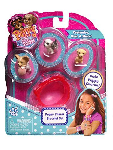 New 2015 Puppy In My Pocket Puppy Charm Bracelet Pink With 3 Tiny Puppies Papillionand Spanieland Dachshund Buy New 2015 Puppy In My Pocket Puppy Charm Bracelet Pink With 3
