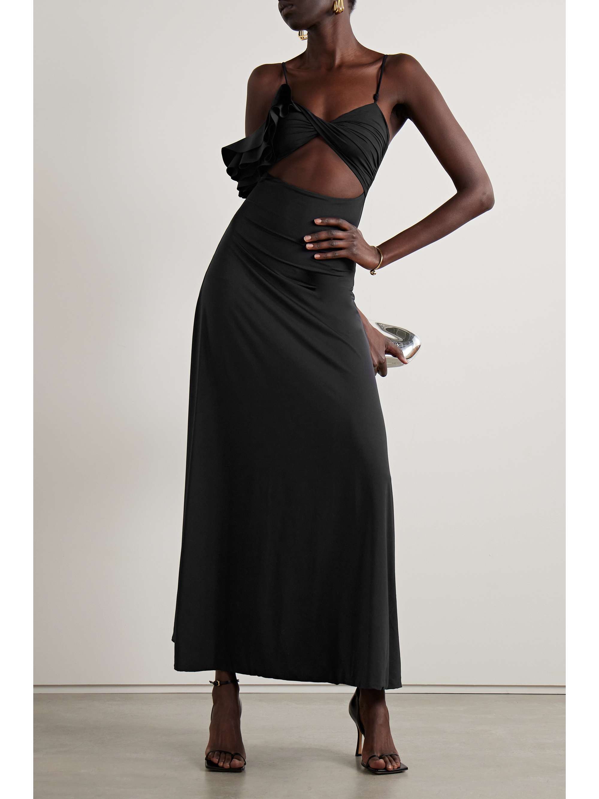 Maygel Coronel Net Sustain Cavalieri Cutout Ruffled Stretch Jersey Maxi Dress Net A Porter